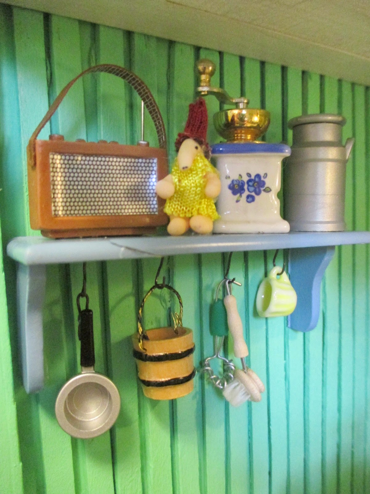 1. Kiitos Päivi. :) Tätä taloa on hauska tehdä, kun minkään ei tarvitse olla ihan kohdallaan. Kirjoissa Pesosen mökissä kaikki on jotenkin vinksallaan, tuolit vähän vinksallaan, lipastot kieroja ja niin edelleen, joten ei ole hirveitä paineita, tuleeko omasta työstäkään ihan priimaa.